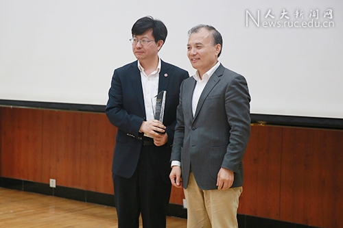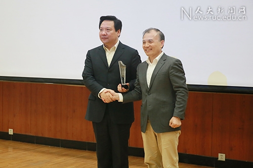 杜子德秘书长向陈雨露校长、杜小勇院长颁发感谢牌。