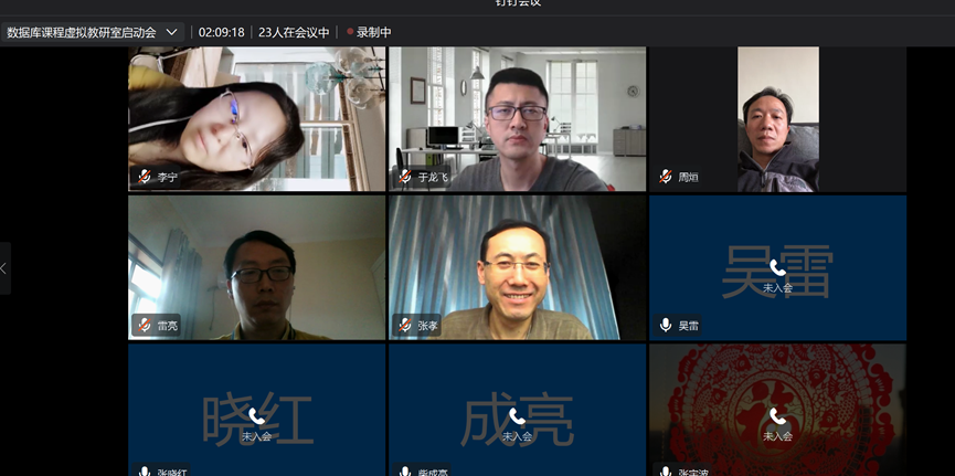 接着,各位与会代表介绍所在单位数据库课程的建设与支持情况。陈晋川副教授介绍了虚拟教研室的组织模式。张晓莹老师分享了虚拟教研室专属钉钉平台的使用。