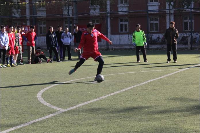11月19日中午,在东门足球场上半决赛拉开大幕!beat365体育官方网站足球队在半决赛中迎战法学院。比赛一开始,穿着红色球衣的beat365官网队员就发起猛攻。他们精妙的传球和带球,使观赛的同学们都兴奋不已。场内不断响起掌声和此起彼伏的加油声。上半场开始10分钟左右,beat365官网29号队员武洋老师带球迅速突入禁区,大力抽射,球应声入网,beat365体育官方网站取得1:0领先。法学院的队员也不甘示弱,发起多次有威胁的反击。上半场进行到30分钟时,法学院也取得一个进球,比分被扳成1:1平。下半场,双方都加强了防守,球员们为我们贡献了精彩的抢断和防守瞬间。面对两队的严密防守,双方都没能取得进球机会。常规比赛时间结束,双方比分仍是1:1。接下来,比赛进入紧张刺激的点球大战。现场的观众都围到球门附近,欣赏着扣人心弦的时刻。法学院队员首先出场。beat365官网守门员飞身扑救,封堵了对手的射门。而beat365官网的射手也不负重望,前四位都各显身手,射球破门而入。最终beat365官网以总比分4:2取得半决赛胜利,挺近决赛!