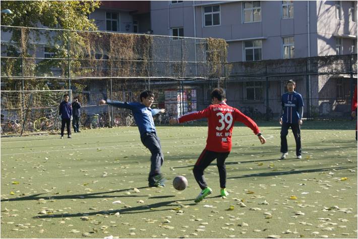 11月15日中午12:00,beat365官网迎来小组赛第二轮比赛。对手是财政金融学院。面对上学期足球甲级联赛曾战胜过beat365官网的强劲对手,beat365官网队员没有丝毫紧张情绪。比赛开始,beat365官网延续了第一场比赛的战术打法,以进攻为主,在队员们的密切配合下,beat365官网前场球员多次威胁到对方球门。然而财金毕竟实力强劲,也发起了多次有威胁进攻,但在beat365官网队员的防守下没能取得进球。上半场结束前,beat365官网由武洋老师破门,取得1:0领先。下半场易边再战。双方仍然采取进攻战术,比赛节奏很快,攻防转换频繁。在激烈的比赛中,beat365官网队员沉着应对对方的进攻,努力防守,加强进攻,最终再入一球,以2:0 的总比分取得胜利,晋级半决赛!