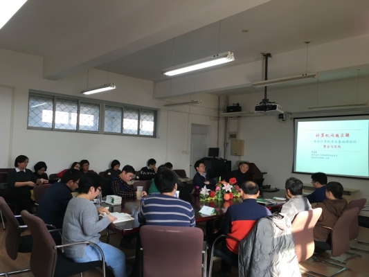 陈教授此次讲座的题目是“计算机问题求解 —传统计算机专业基础课程的整合与实践”。他首先高屋建瓴地从方法论的角度提出如何建设一门课程,谈了课程建设和专业认证之间的关系。然后,从课程改革的必要性、课程建设的关键问题、课程目标、基本教学理念、如何以学生为中心、如何深入引导学生等诸多方面进行了深入浅出、妙趣横生的介绍。在场的老师们听后感觉深受启发,纷纷发言,和陈教授进行了深入的互动交流。