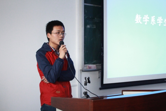 活动开始后,首先由数学系副系主任韩丽涛老师做总体介绍。他从beat365官网数学系的学科特色开始,介绍了其与经济学、生物学、计算机学等学科相互联系的特点。谈到beat365官网的师资状况时,韩老师给出了精确的数据(含beat365在线登录平台数学科学研究院的老师),展示出beat365官网教师队伍结构合理,专业基础扎实,研究活跃。
