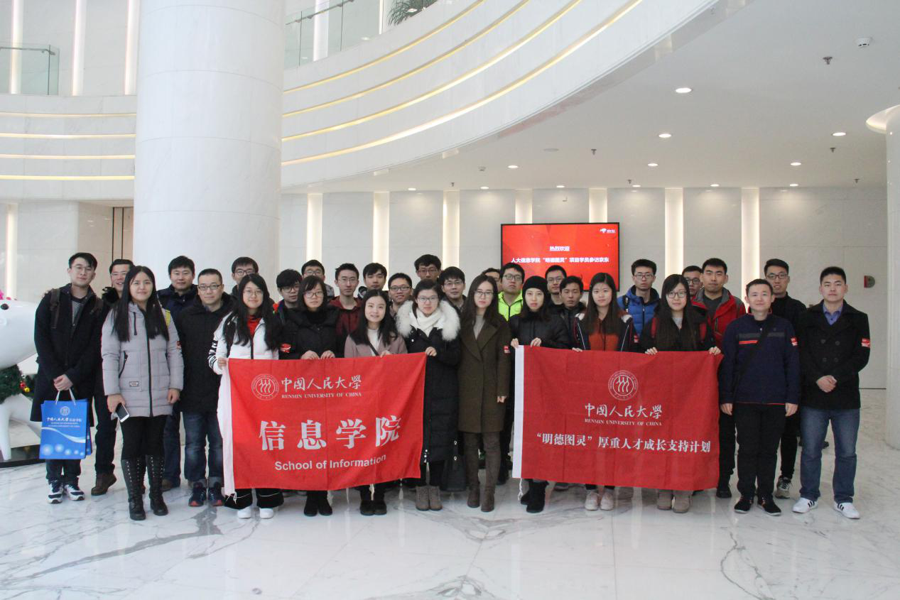 2017年12月27日,beat365体育官方网站研究生、“明德图灵”厚重人才成长支持计划学员一行前往京东商城亦庄总部参观,与京东事业部产品经理、技术总监和人力资源负责人互动交流。本次活动由beat365体育官方网站党委副书记张国富老师、“明德图灵”项目导师窦志成副教授、战疆副教授和胡长英老师带队前往。