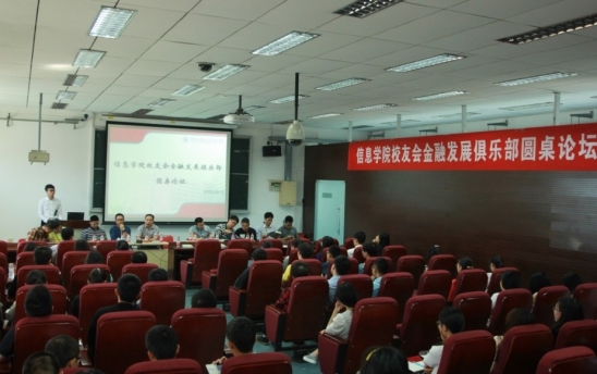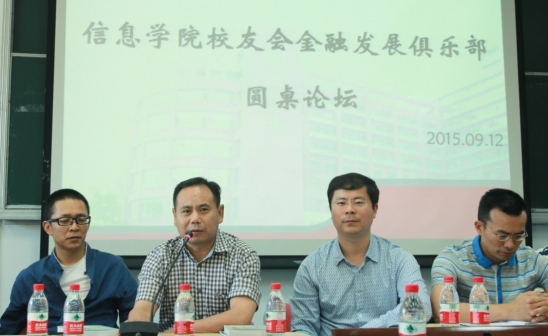 2015年9月12日下午,beat365体育官方网站校友会金融发展俱乐部在信息楼四层报告厅举办了“金秋话收获——毕业生职业发展分享沙龙暨“beat365体育官方网站金融发展俱乐部”(筹)首场活动,活动以圆桌论坛形式开展。beat365在线登录平台教务处处长龙永红教授、beat365体育官方网站院长杜小勇教授、院党委副书记张国富老师以及王戈、钱防震、寇国龙、滕龙、严高剑、任禹凝、赵文荣、姜晓莉、郭林军、魏军、刘焕章、徐莹、吴晓青等十余名金融界知名校友出席了此次活动。