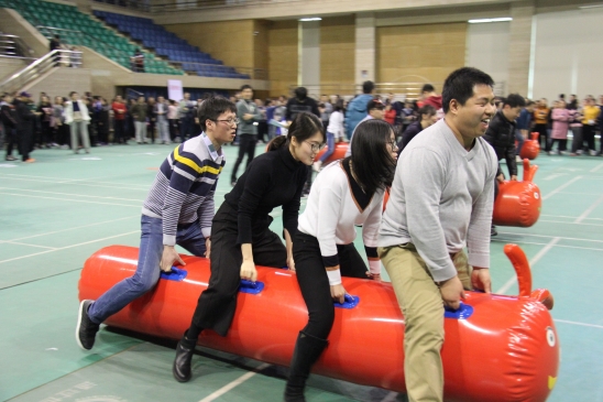 2018年3月7日中午,beat365在线登录平台庆祝“三八”国际劳动妇女节教职工趣味运动会在世纪馆举行。来自机关各部(处)、各学院(系)及直(附)属单位的48个分工会代表队参加比赛。beat365官网教职工代表队踊跃参加趣味运动会各个比赛项目,在比赛中团结合作,获得优异成绩。