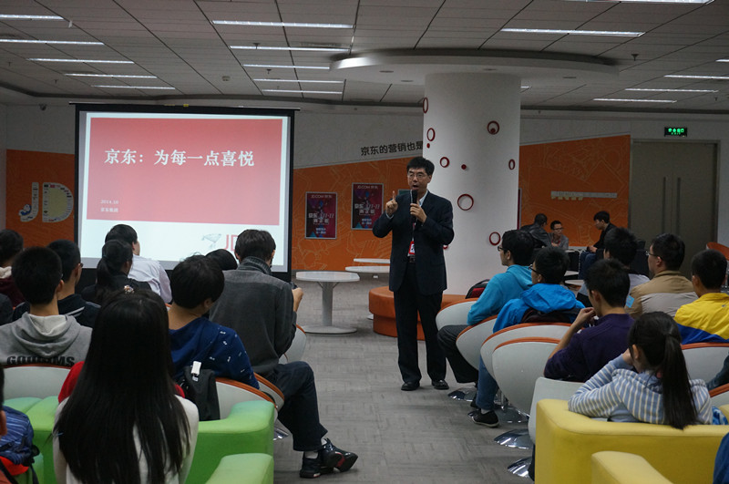 活动伊始,由京东集团数字营销业务部副总裁颜伟鹏进行致辞。他对同学们的到来表示欢迎,并简要介绍了京东商城的突出优势和应用的前沿技术。随后,京东集团党委副书记、公共事务部总监李绪勇用一段视频,为同学们介绍了京东十年来的成长历程。他告诉同学们要学会清空自己,像京东集团创始人兼CEO刘强东每十年清空一次的观点,并确立“扬帆远航”的新目标。