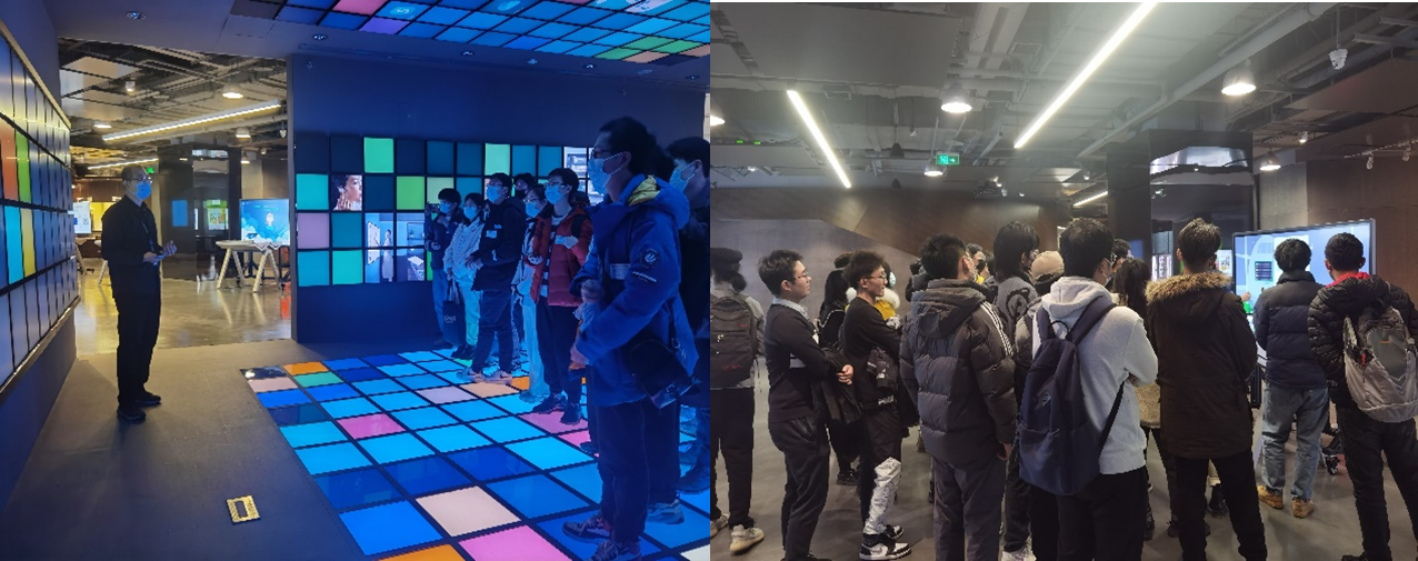 微软科技中心是一个由不同展区构成的前沿技术展示平台,同学们在讲解人员的带领下,参观了由上百个屏幕矩阵组成,模拟Windows系统实体世界的WOW空间,亲身体验了创新英语学习模式的微软小英,讲解人员还向同学们展示了微软全新混合现实设备Microsoft Hololens,Hololens可以将计算机生成的虚拟效果叠加于现实世界之上,带给人们更加沉浸的混合现实体验。