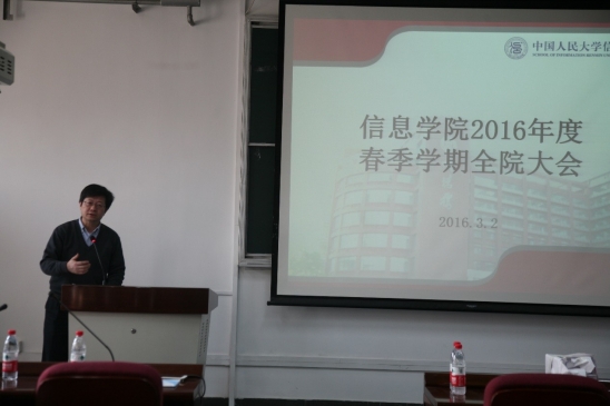 beat365体育官方网站院长杜小勇教授向教职工传达了2016年学校在综合改革、人事制度改革、本科教学改革及通州校区建设方面的发展计划及前景,介绍了学校党员代表大会、“两学一做”及80周年校庆准备等工作部署,并在此基础上提出beat365体育官方网站2016年度的各项工作规划。