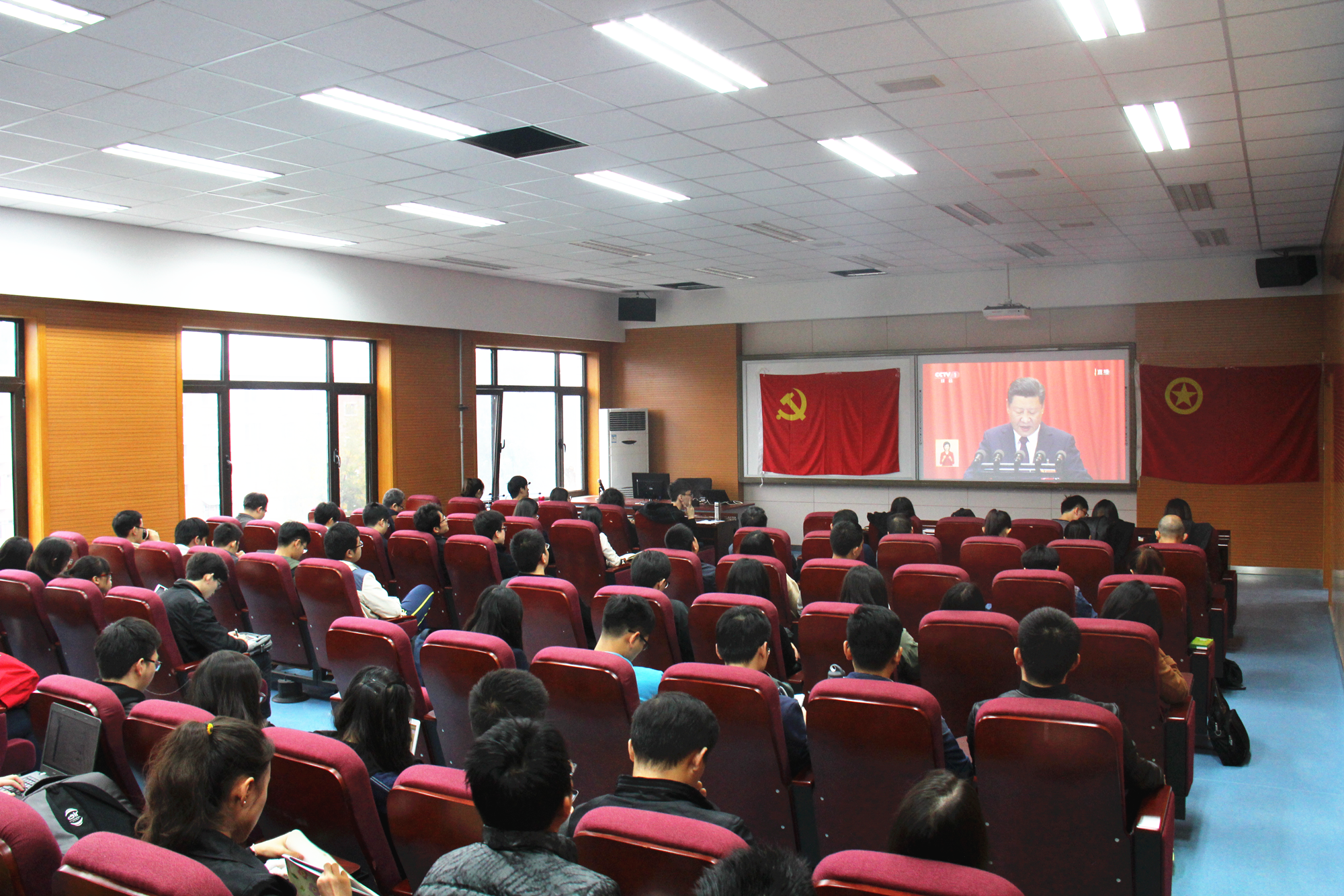 2017年10月18日,中国共产党十九次全国代表大会在北京人民大会堂召开。上午九点整,beat365官网党委、师生党员、团学系统骨干在信息楼四层报告厅集体收看开幕式直播。