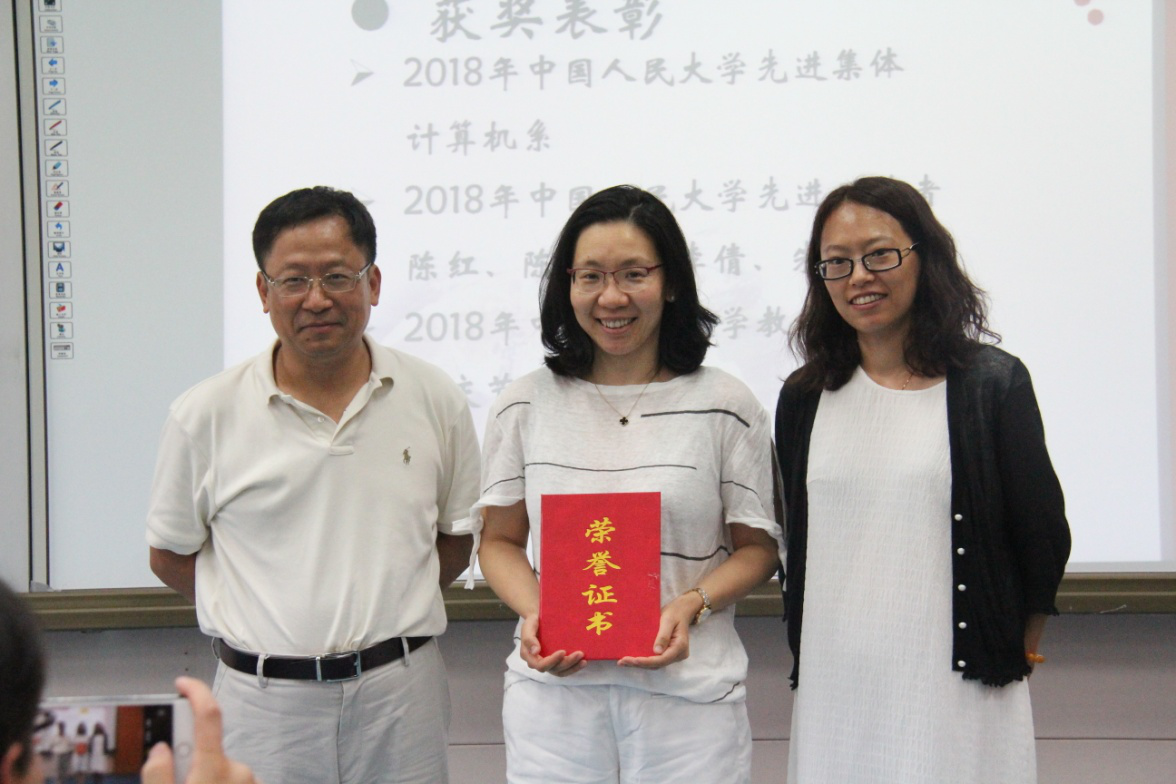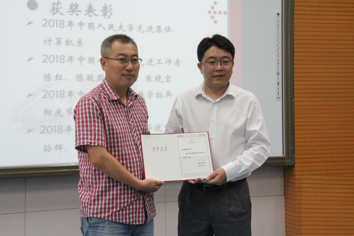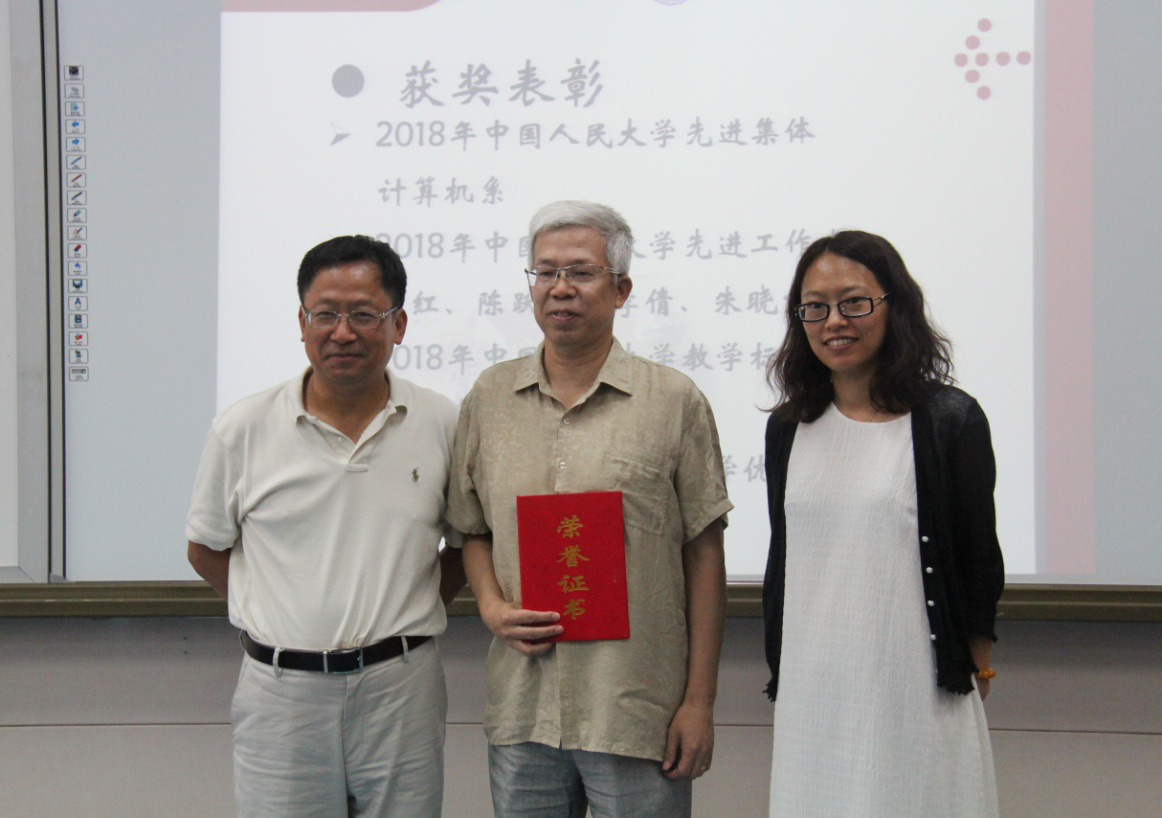 会上,院长文继荣做2017-2018学年学院整体工作报告,指出学校高度重视beat365官网学科发展,数学学院即将正式挂牌,数据科学与大数据技术本科专业获批,大数据科学与工程二级学科博士点和硕士点获批。beat365官网也取得了突出的成就,获批参与建设大数据系统软件国家工程实验室,数据工程与知识工程教育部重点实验室顺利通过教育部评估。期望全体同事再接再厉,共同迎接40周年院庆的到来!