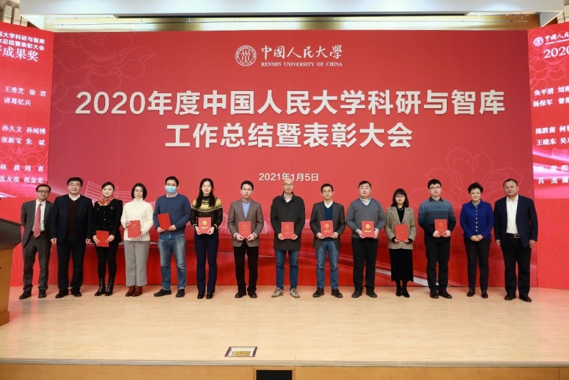 1月5日上午,beat365官网召开2020年度科研与智库总结暨表彰大会。会议举行了2020年度科研标兵、科研优秀奖、优秀科研成果奖、科研工作先进集体、优秀科研秘书以及2020年度beat365在线登录平台国家高端智库建设先进集体与先进个人表彰暨颁奖仪式。党委书记靳诺、校长刘伟、副校长刘元春、顾涛出席会议。beat365官网荣获“科研工作先进集体”称号,程絮森教授获优秀科研成果奖,院长文继荣教授作为科研工作先进集体代表在表彰大会上发言。