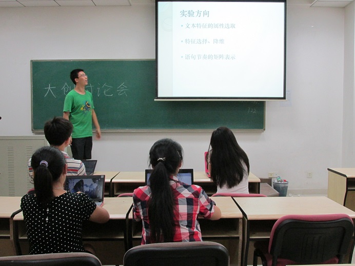 在学校教务处组织的答辩中,该项目小组阐述了“计算机技术与文学作品的结合”的研究思路,从韩寒代笔门事件引出问题,指出这一事件尚无定论是因为争辩双方都在进行主观地推断而无法提供客观证据,从而提出了一种通过文本分析技术来进行“代笔”判定问题的解决方法。评委老师肯定了同学们运用所学的计算机技术去解决生活中的实际问题的做法,并在和同学们的讨论交流中提出了自己的想法,给出了进一步实验的建议。在激烈的讨论声中,答辩完满结束,并最终获得了优秀结项的成绩。