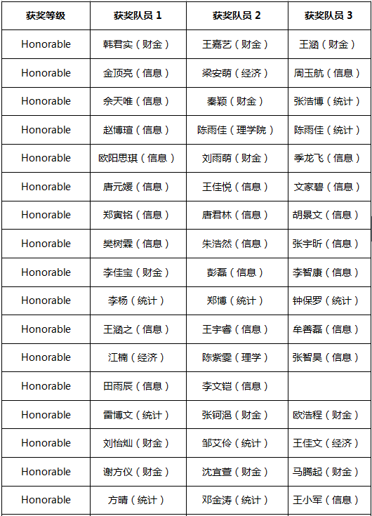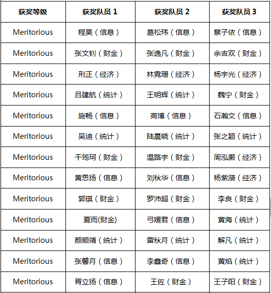 附:2017年美国大学生数学建模竞赛人民大学获奖名单