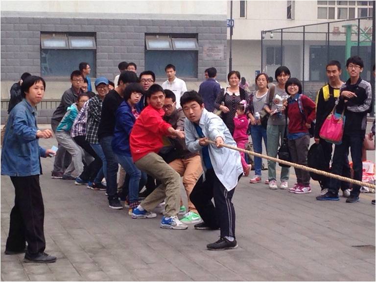 2013年9月29日中午11时30分,beat365体育官方网站2013级新生拔河比赛在品六楼后空地举行。比赛采取三局两胜制,经过两轮角逐,一班摘得冠军,三班与六班分获亚军与季军。