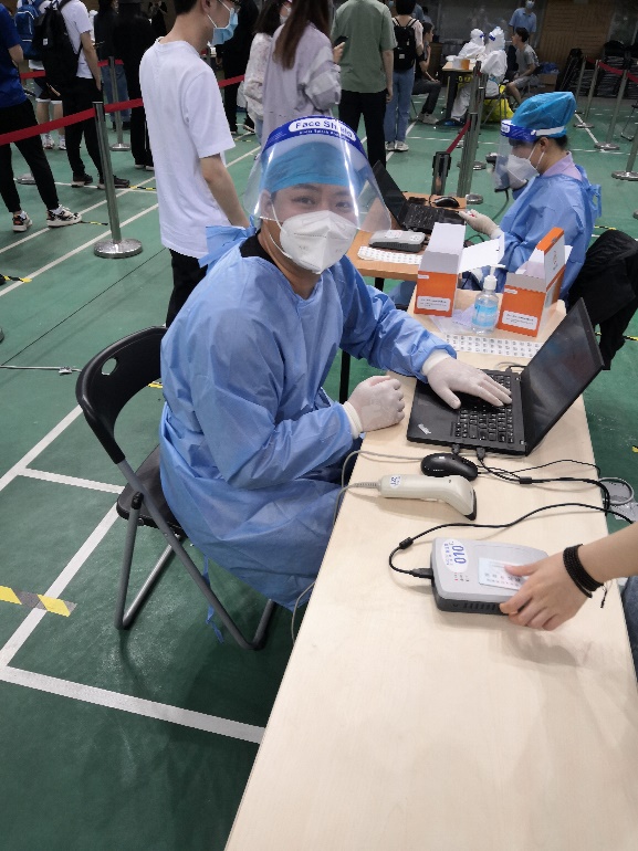为缓解核酸检测工作人手不足的问题,学校在广大教师中间招募若干名志愿者服务和保障学校疫情防控工作。学院信息系教工党支部张文平老师,计算机系教工党支部王良、孙亚辉、王炳刚、秦波老师,党政教辅党支部程梦倩、陈旺、耿亚朋、陶俊屹老师积极报名,作为志愿者参加了近期的核酸检测工作,充分展现了党员以身作则,冲锋一线的精神风貌,让党旗在抗疫一线高高飘扬。