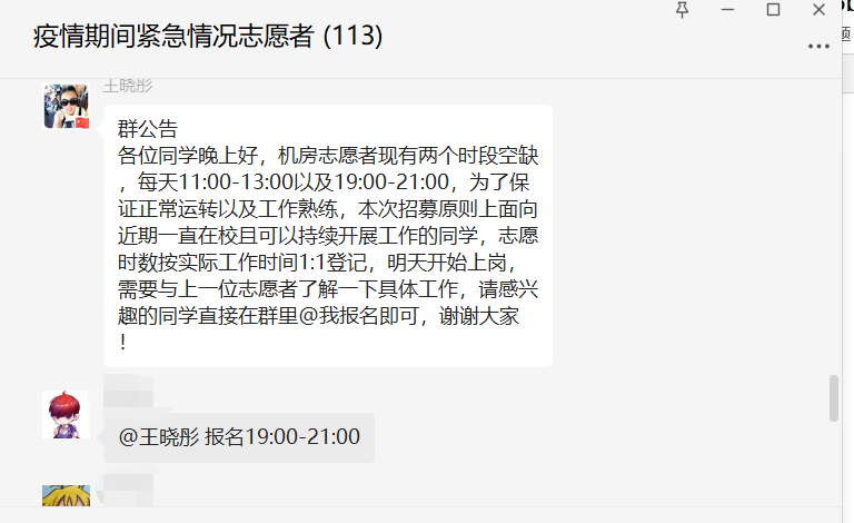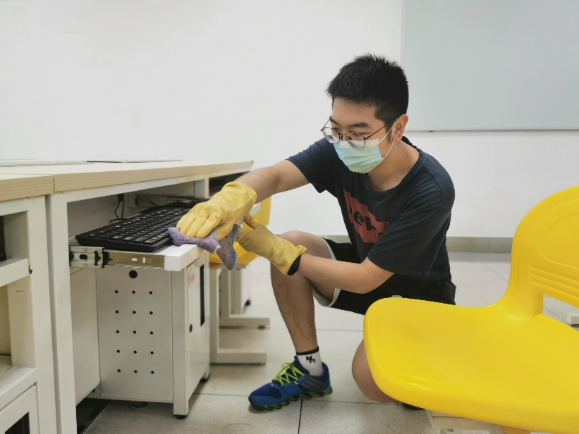 此外,为了解决同学们线下场地不足的问题,学院开放了理工配楼二层机房供同学们学习科研面试使用,保障学业、毕业、就业稳步有序。由于疫情防控政策,综合实验室负责教师均在校外,机房日常维护、门禁管理全部由学生志愿者承担。