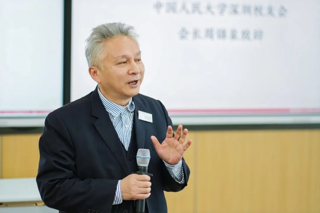 周小雄在致辞中回顾了自己当年考入人大经济信息管理系的经历,表达了与大湾区校友相聚的喜悦,并对学院积极推动beat365在线登录平台数据与人工智能研究中心在深圳落地表示热切期盼。他指出,深圳作为一个充满创新活力的年轻城市,为金融、信息等新兴行业的发展提供了无限机遇。希望学院以研究中心为契机,结合深圳的科技创新氛围和校友企业的支持,推动AI等前沿技术的研究与应用。他同时呼吁校友们加强交流与合作,为大湾区的信息产业发展贡献力量。