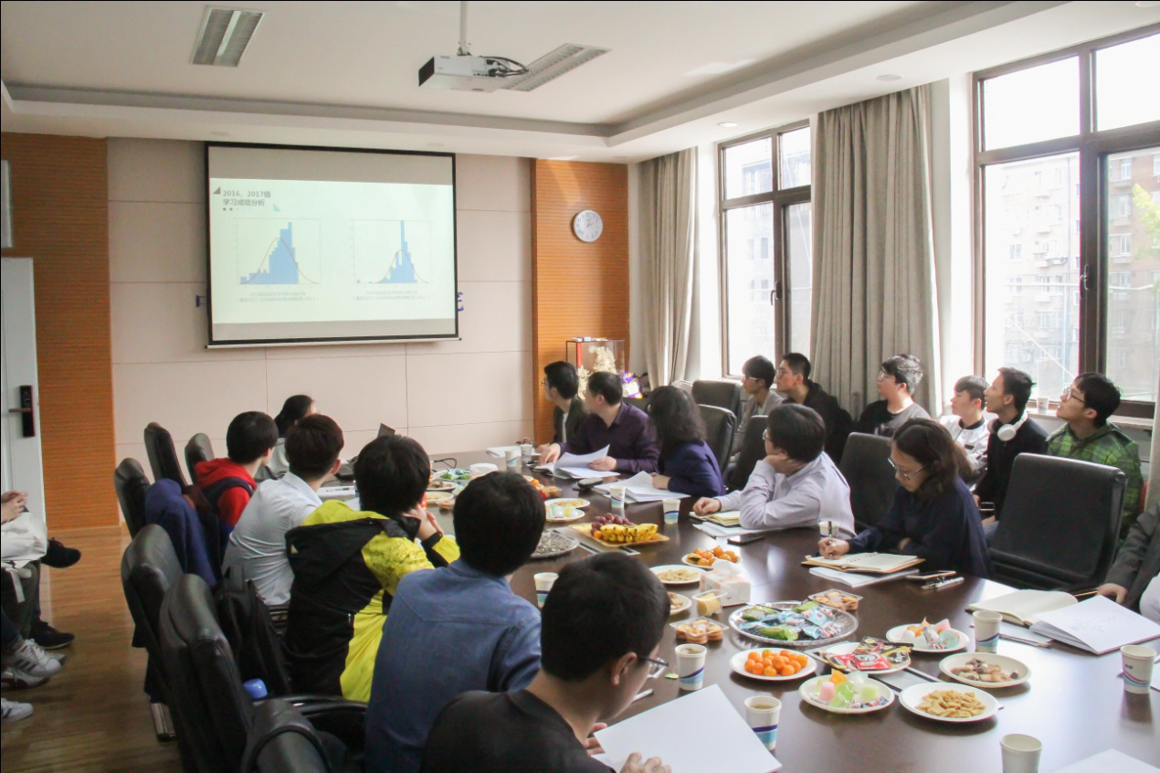 分团委书记王晓彤老师先向大家展示了2016、2017级全体本科生学业成绩分布情况,分析2017级各项单科成绩情况,并对各年级课程挂科情况进行了对比分析。之后,王晓彤老师展示了面向2016、2017级本科是进行的调查问卷结果。问卷主要包括了学生成绩分析、学院学习氛围和职业发展等内容,集中反映了学生的学习情况,生活与学习的平衡状况,对目前课堂和培养方案的满意程度及未来的发展方向和职业规划。通过具体翔实的数据,针对beat365体育官方网站的某些问题和现象做出分析。院长老师们对相关数据也提出了自己的见解与想法,进一步分析了目前beat365官网学生在生活学习中存在的问题,并提出解决方案。