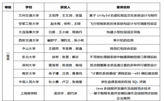 附:第二届全国计算机类课程实验教学案例设计竞赛一等奖获奖名单